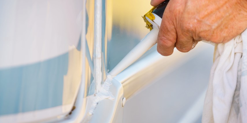 Windows are the next target. In older RVs where old sealant has been applied, maintenance best practices call for removal and replacement with more modern, hardier sealant.